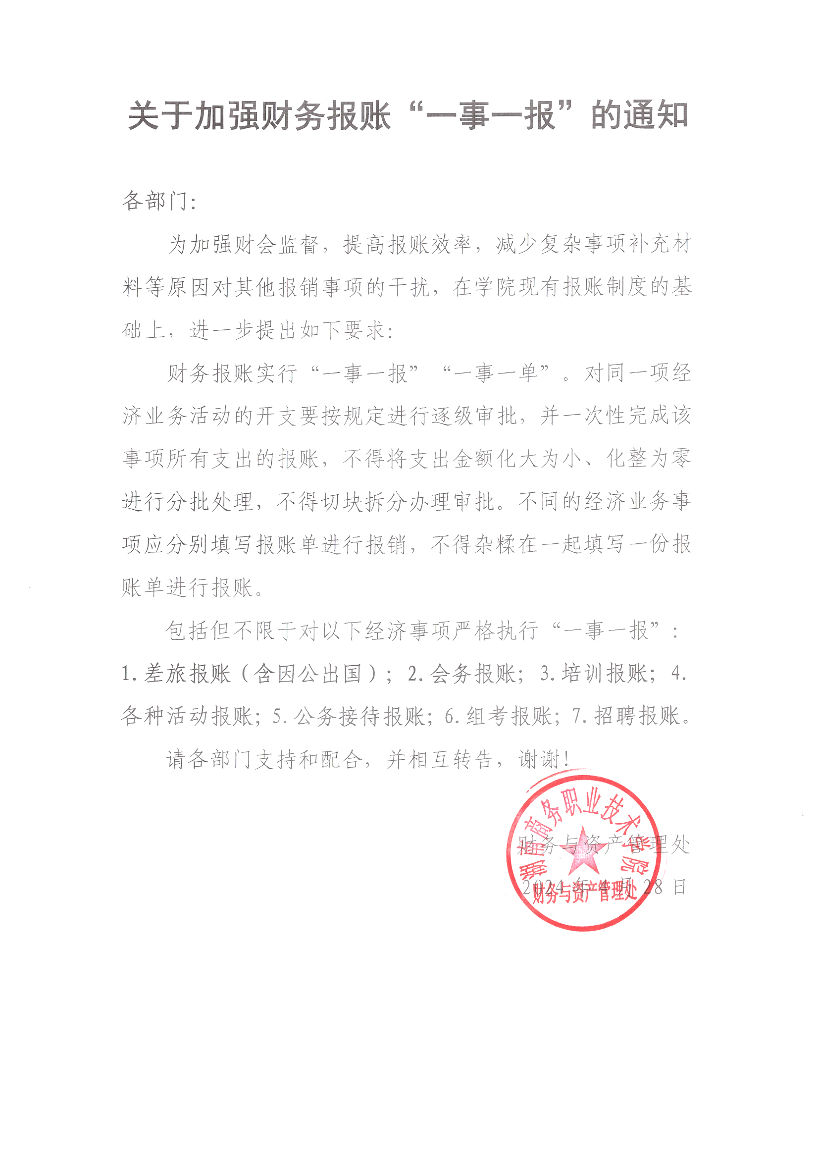 关于加强财务报账“一事一报”的通知