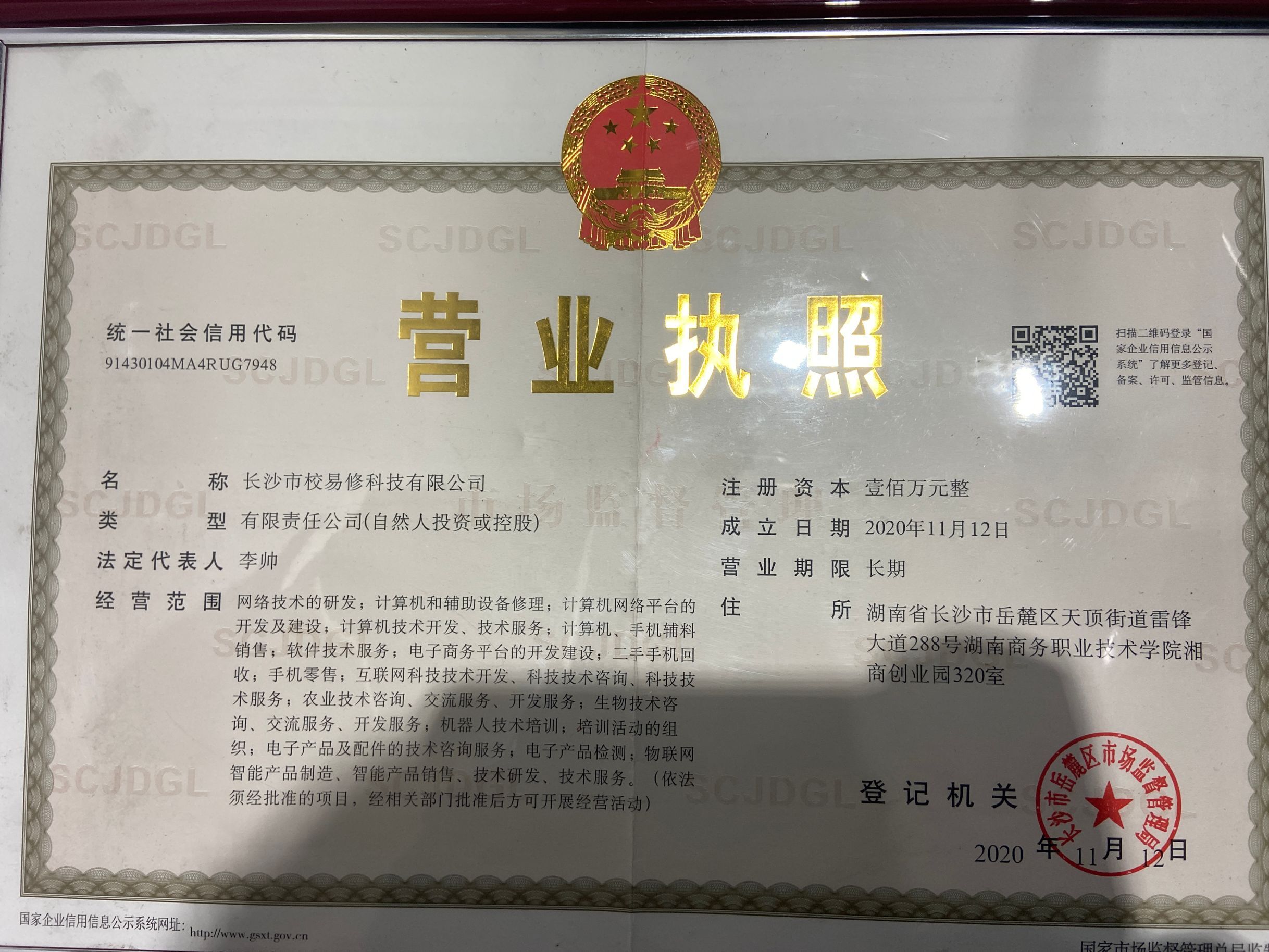 在建立线上+线下的维修模式后,团队又开始思考,是不是可以直接带学生一起做,让他们自己学会维修手机电脑等,这样子过来学习的学生们自己也可以多一门技术,外出后也可以开自己的维修店。说做就做是李帅他们这些理工男的优良品质,在2020年下半年,李帅在商务信息技术学院和创新创业学院老师的支持下注册了成立了校易修科技有限公司,购买需要的设备,进行周密的宣传,成为了商务学院的维修一哥。
