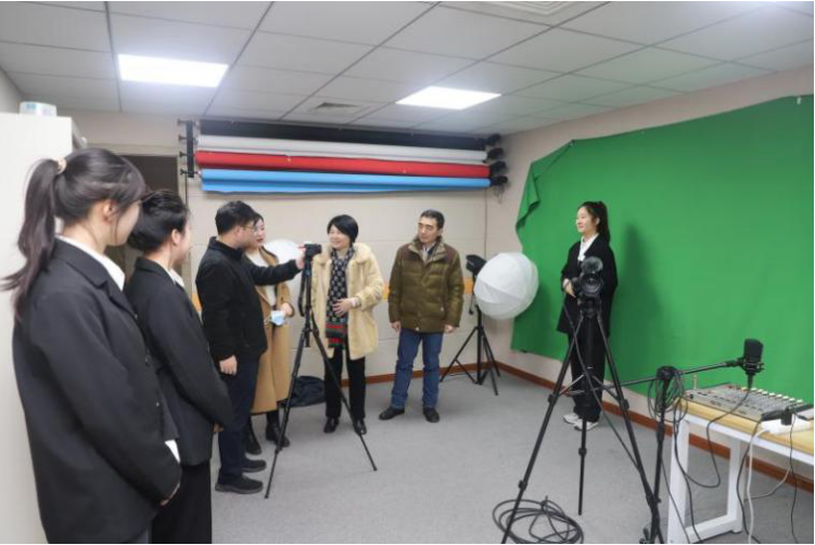 (通讯员:侯妍竹、龙丹)2022年12月6日,湖南商务职业技术学院电子商务学院学工党支部在大学生网络思政中心开展“党的二十大,我来学”接力讲的视频录制。学院党委委员、副院长禹明华,学生工作部部长杨明莅临指导,吴苾老师、侯妍竹老师带领参观录制现场。