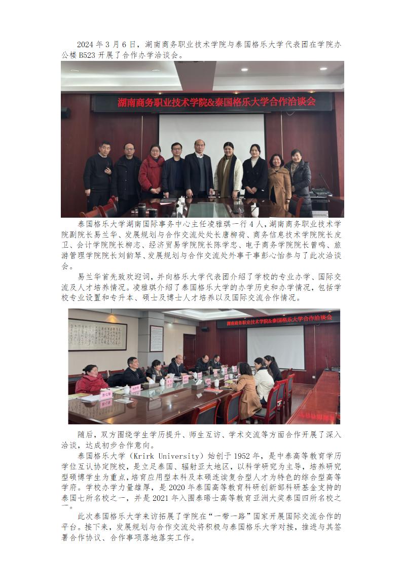 湖南商务职业技术学院与泰国格乐大学开展国际交流与合作洽谈会