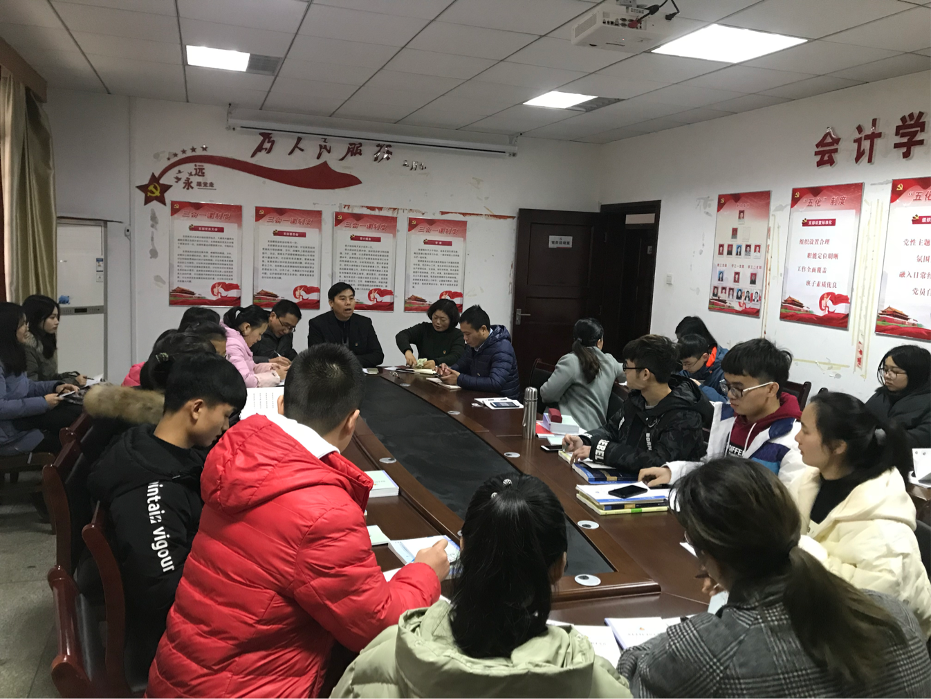 2019年2月28日,会计学院学工一支部在办公楼310组织召开了二月份主题党日活动。会议上,收取了一、二月份党员党费,支部书记检查了各党员“学习强国”APP的学习情况。“学习强国”APP学习广泛,内容详多,要求APP学习每天完成至少10积分,每月至少300积分,每月月底检查积分情况。最后,讨论了支部工作计划。