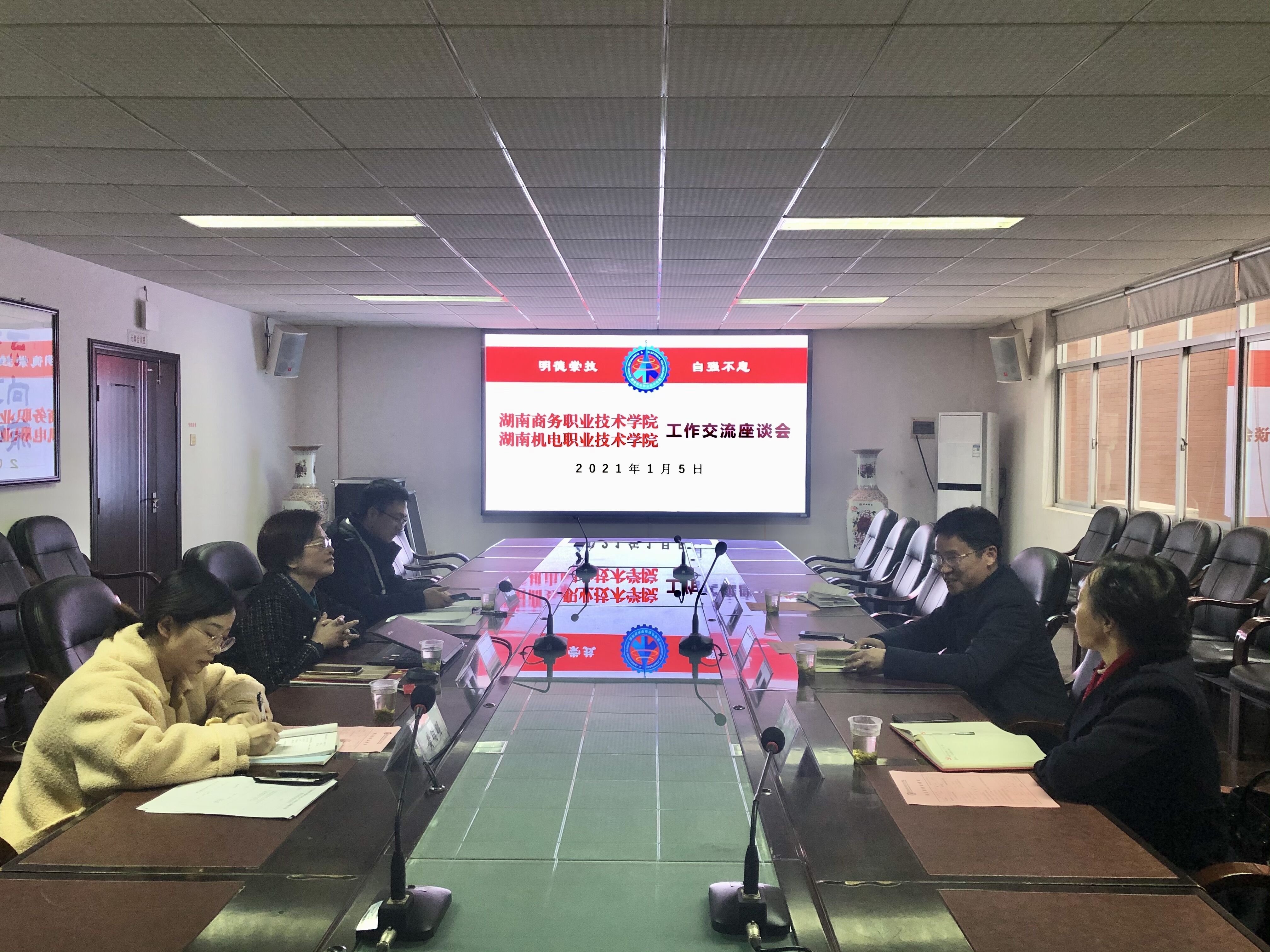 2021年1月5日下午,院纪委书记姜华斌率领纪委副书记陶炎焱、纪检监察室干事徐佳妮前往湖南机电职业技术学院学习交流,该院纪委书记许松、纪委办主任孔祥次、纪检监察室干事黄明明与我院各位同志进行了座谈交流。