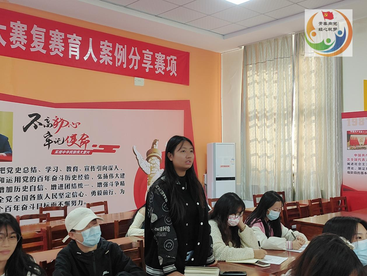 在谈到办好人民满意的教育这一话题时,入党积极分子蒋玲分享到:“教育是国之大计、党之大计,培养什么人、怎么培养人是教育的根本问题。作为当代大学生的我们,要不负国家对我们的培养,要树立远大理想,培养良好的价值观,学好专业知识,向着成为德智体美劳全面发展的社会主义建设者和接班人而努力奋斗!”