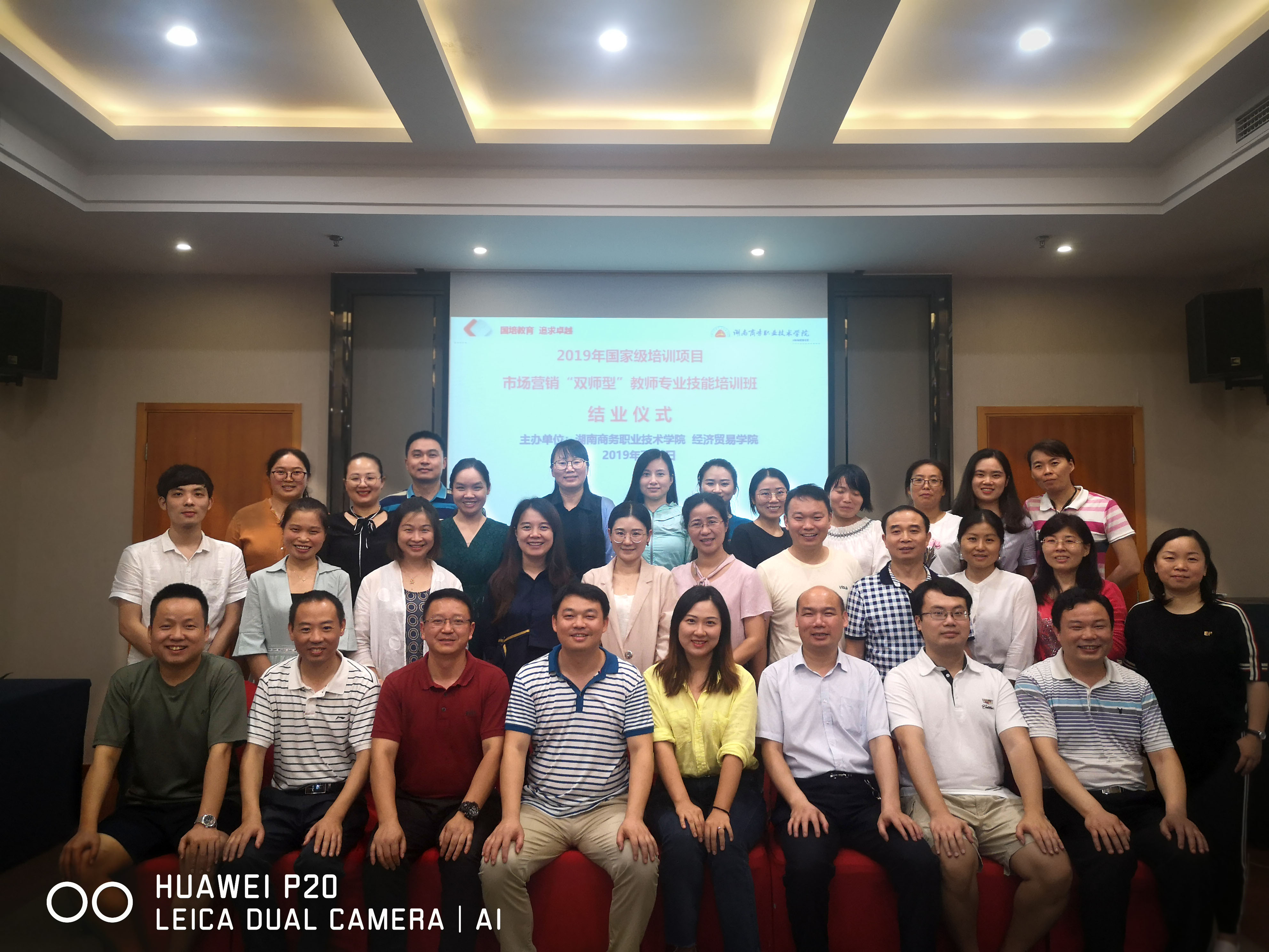 2019年国家级培训项目——市场营销“双师型”教师专业技能培训结业典礼于7月9日在长沙市五强商务中心3号会议厅举行。来自全省(区、市)的30名高职学院骨干教师圆满完成了为期20天的培训任务。湖南商务职业学院经济贸易学院院长陈学忠、副院长谢虎军、市场营销专业教研室主任王娜玲以及全体培训学员参加典礼。典礼仪式由陈学忠教授主持。