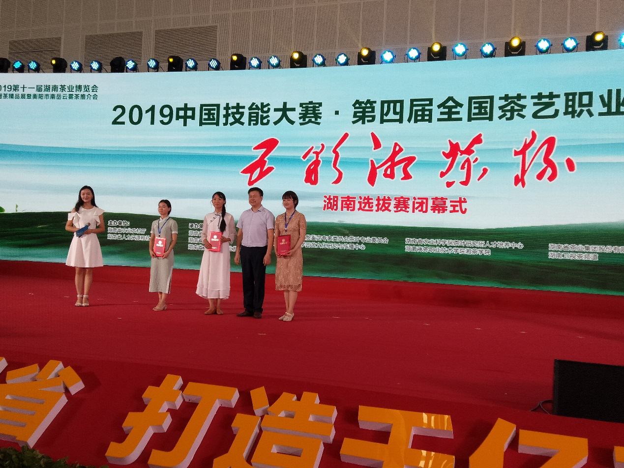 9月9日,由省农业农村厅、省人力资源和社会保障厅共同举办的、2019中国技能大赛﹒第四届全国茶艺职业技能竞赛“五彩湘茶杯”湖南选拔赛圆满落幕。经过3天的激烈角逐,我校荣获团体赛二等奖、个人赛二等奖及茶席设计赛三等奖。
