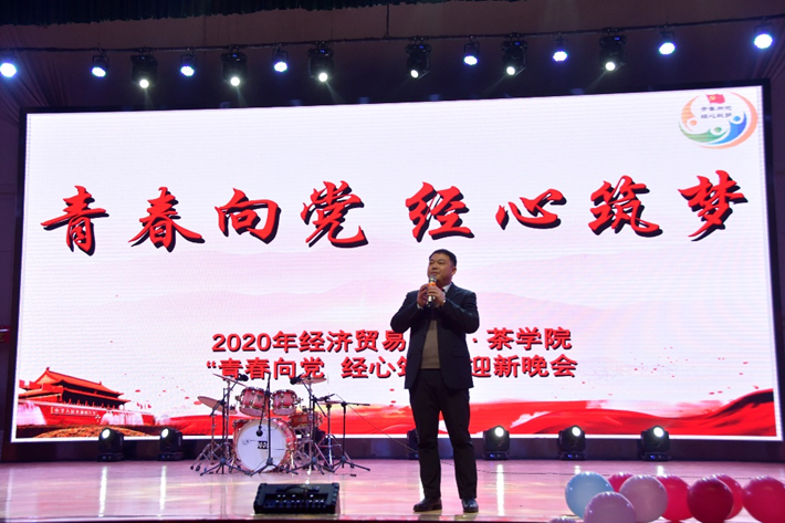 (通讯员:向俊霖)11月30日,经济贸易学院大型文艺晚会“青春向党·经心筑梦”在学校体育馆拉开序幕。本次晚会由经济贸易学院学工党支部主办,经济贸易学院茶学院团学分会文娱部承办,晚会旨在用中国共产党的初心和使命感染大学生,积极引领新时代大学生“听党话、跟党走”。副校长禹明华、学工处处长杨明、经贸学院院长陈学忠、茶学院院长易能、经贸学院党总支书记谢虎军、副书记王晨、学工党支部书记方红梅及经贸学院茶学院老师代表出席晚会。学院2020级、2019级全体学生欢聚一堂,共赏节目。