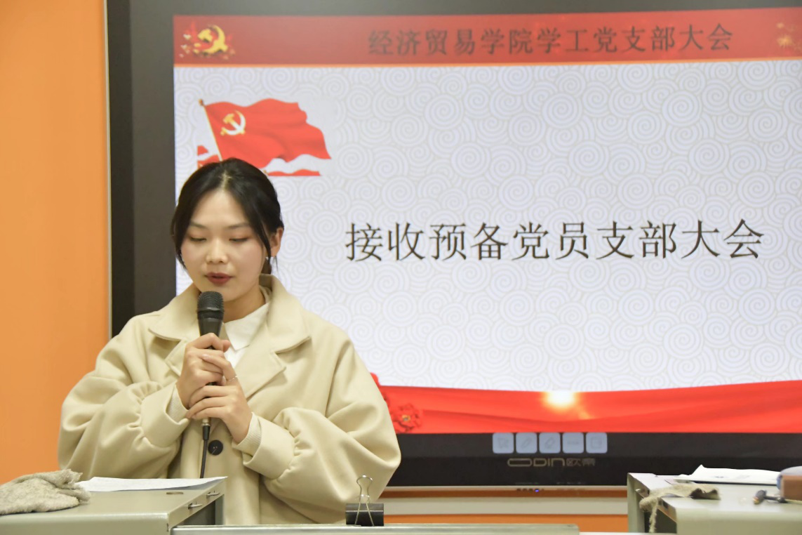 (通讯员 李坤)2020年12月1日下午2:00经济贸易学院学工党支部在经济贸易学院分党校二教101教室召开接收中共预备党员支部大会。大会主要讨论接收周含香等22名发展对象成为预备党员相关事宜。党支部全体党员、发展对象以及发展对象入党介绍人等共60余人参加了会议。本次大会由经济贸易学院学工党支部书记方红梅同志主持。