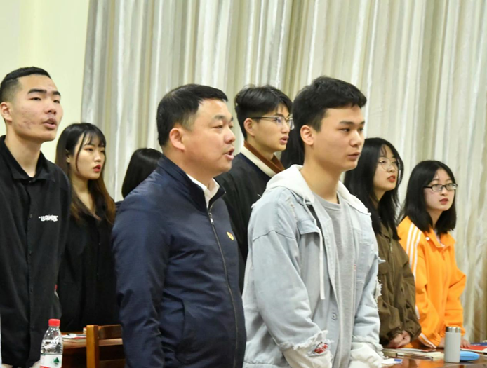 (通讯员 易荣淼)2021年4月13日中午12:20,经济贸易学院学工党支部在经济贸易学院分党校教室(二教101教室)举行了2021年第一期入党积极分子开班仪式。本次开班仪式由“青春向党”入党积极分子先锋营营长刘青春同志主持。参加此次仪式的有本次参加培训的102名入党加积极分子、19级学生代表及经济贸易学院党总支书记谢虎军同志。