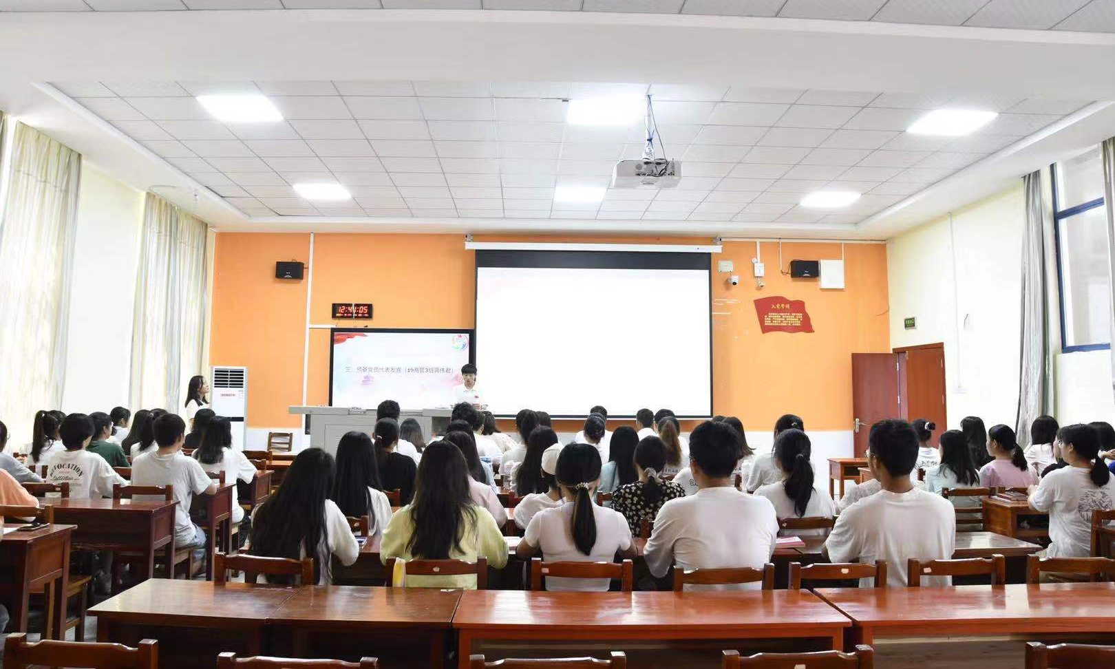 随后,由19级商务管理1班的蒋伟君同志作为预备党员代表进行发言。他号召本期入党积极分子一要端正学习态度,正确认识入党的意义;二要明确党员的权利和义务,不但要组织上入党,更要思想上入党;三要牢记党的宗旨,树立良好的服务意识,发挥先锋模范作用。
