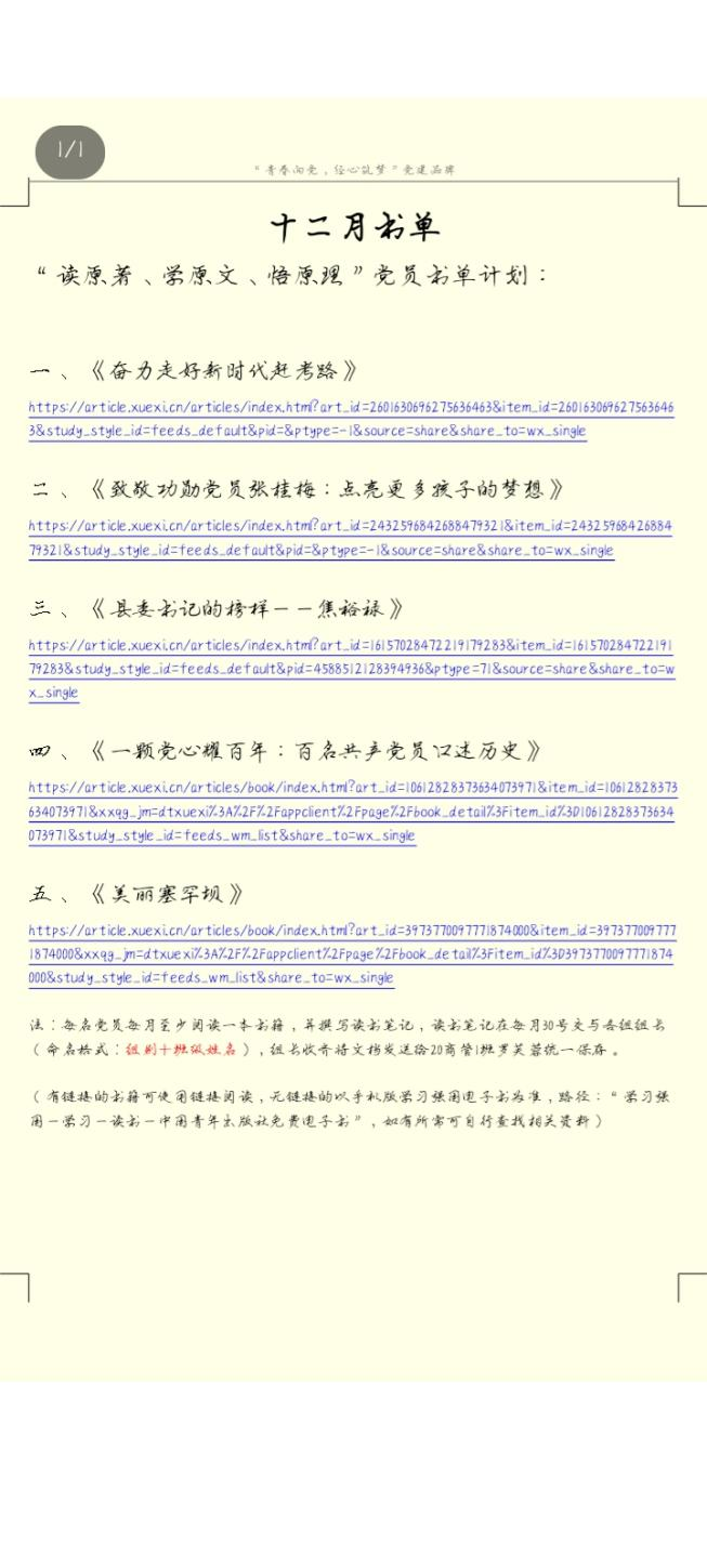 (通讯员 周自立)立志宜思真品格,读书须进苦功夫。为使支部预备党员、入党积极分子在树立远大志向的同时,养成良好的品格,在读书的同时向学习榜样,下足功夫,刻苦尽力。2021年12月份期间,经济贸易学院学工党支部组织全体预备党员和19、20级入党积极分子开展第十七期“读原著、学原文、悟原理”党员书单计划活动。