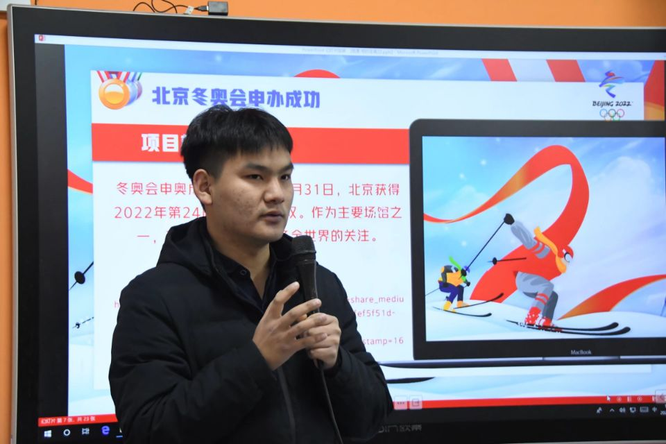 活动开始,主持人以刚闭幕的北京冬奥会话题为切入点,引出本次活动主题,并介绍了冬奥会的历史背景及发展历程。随后,主持人带领大家观看视频《2022年冬奥会主办城市揭晓》。凌润同学说到:“北京冬奥会申办成功不仅展示了我们的综合国力,同时极大地提升了我们在国际上的影响力。北京冬奥会不仅是一场体育盛会,也是一场文化盛宴,讲述着中国故事,彰显着中国风采,传递出中国自信。”