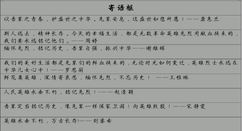 紧接着,主持人组织大家开展“清明祭英烈”寄语活动。同学们用感动的笔触纷纷表达对革命先烈缅怀之情。