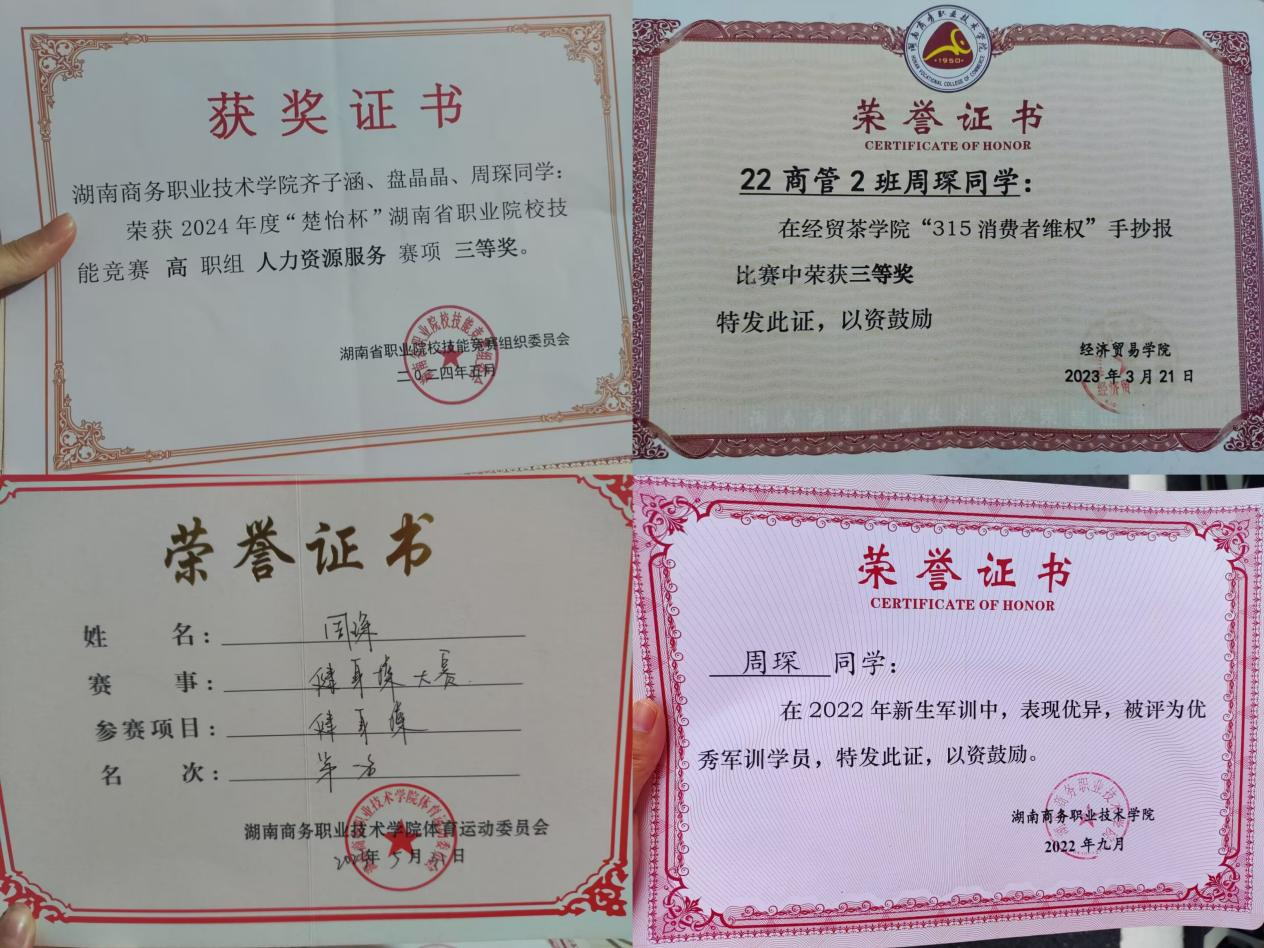 ▲周琛同学部分荣誉证书
