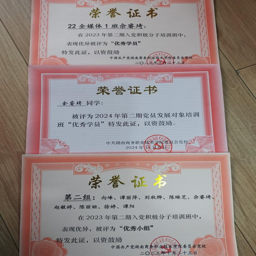 (通讯员 晏艳阳)“嘿,你知道佘睿琦吗?”“当然知道呀,她可厉害啦!”“是吧,她呀,听说她在学校表现超出色,那校级励志奖学金、校级三等奖学金可都是凭自己努力拿到手的,而且还被评为优秀入党积极分子,真是太优秀了,咱可得向她多学学呀。”“嗯嗯,确实值得咱好好学学呢。”学弟学妹们在校园里时常交流着这些话语。