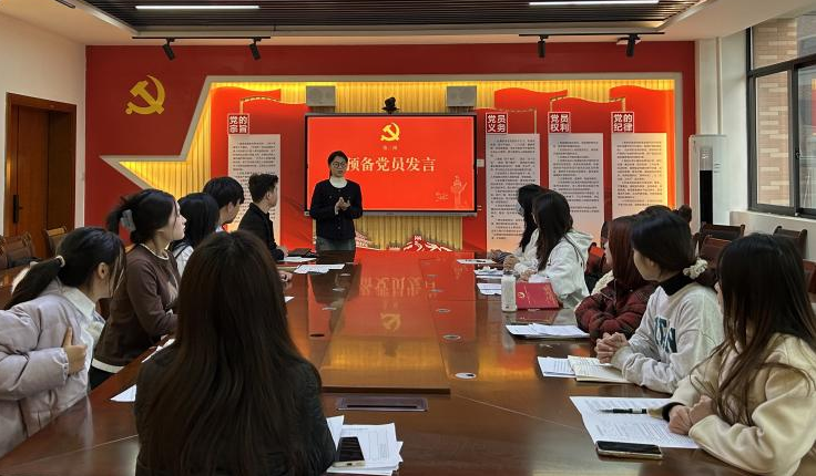 紧接着,预备党员代表22 级商务管理 2 班周琛以真挚的情感,分享了自己作为预备党员的心得体会与成长感悟。她谈到,成为一名预备党员既是荣誉,更是责任,在今后的学习生活中,将以更高的标准严格要求自己,为党和人民的事业贡献自己的青春力量。
