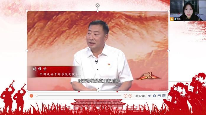 首先,主持人组织大家观看了纪录片《精神的力量》。影片讲述了延安精神,延安精神是中国共产党及其领导下的人民在革命实践中形成的宝贵精神财富,其核心是对共产主义理想的坚定信念和对党的事业的忠诚。