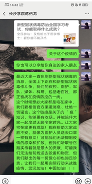 会计学院统计与会计核算专业,18统会2班孙望霞同学从自己出发,积极宣传防控知识,分享战疫中的感动故事。