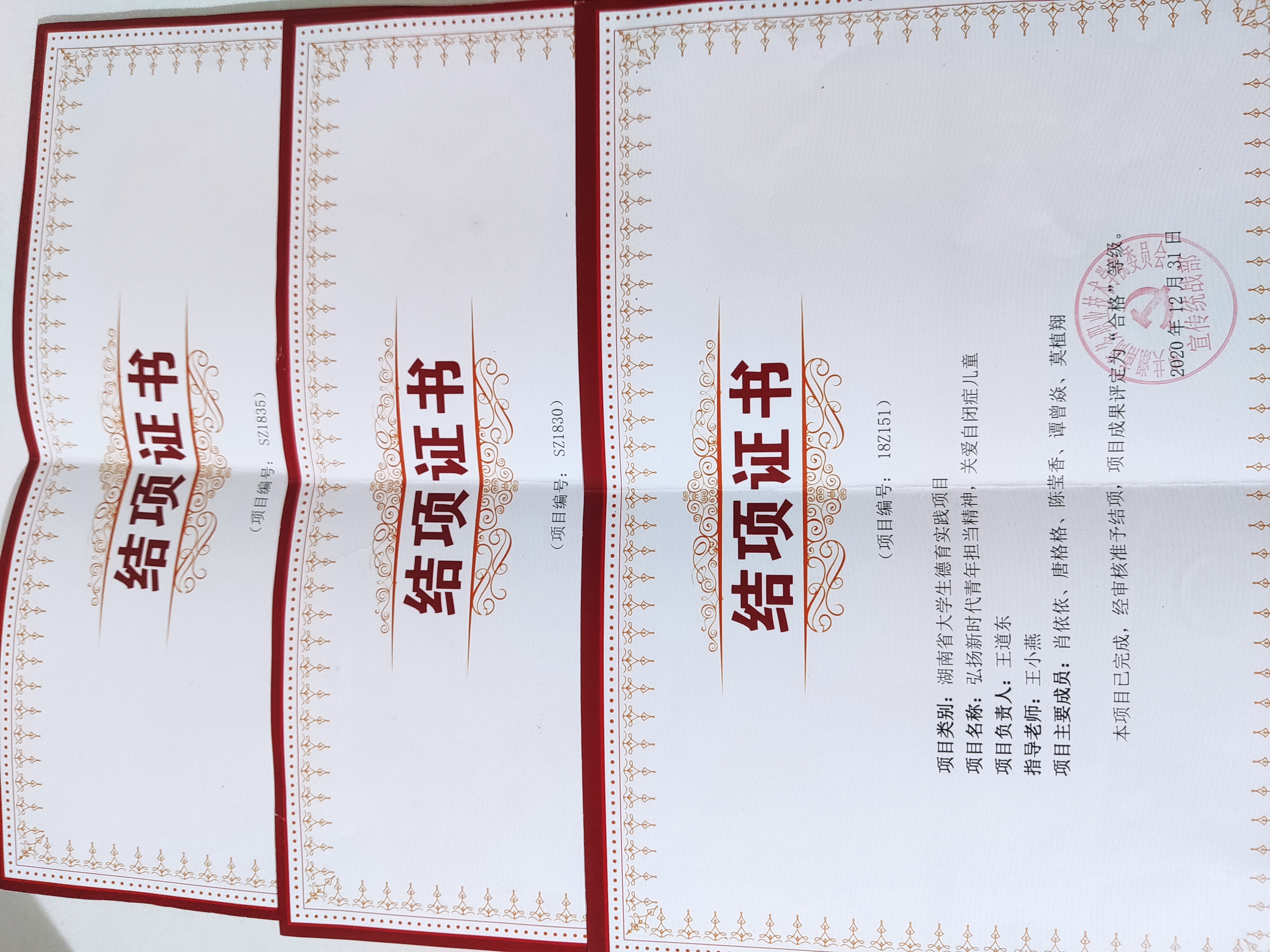 部分荣誉证书