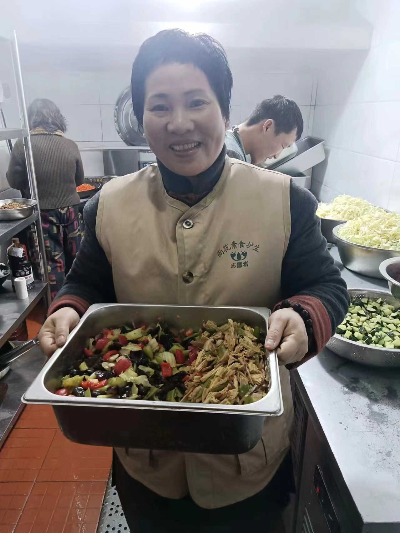 在上午8点,我班志愿者们纷纷提前到场,开始了紧张有序的准备工作。在谭灿娇老师的带领下,大学生志愿者们热情洋溢地投入到活动中。他们紧张而又忙碌的身影,充分展现了我院志愿者的风采。他们与雨花斋的工作人员携手合作,精心准备了丰盛的中餐,为老人们送上了温暖和关爱,他们用感恩的心服务着每一位用餐的人们。