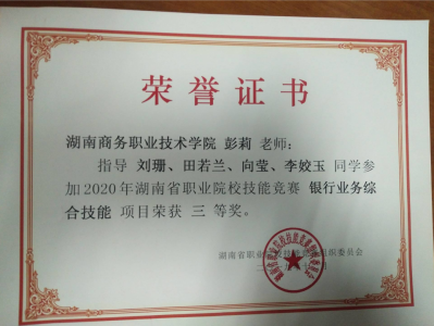我院彭莉、郜旭芳老师指导学生荣获2020年湖南省职业院校技能竞赛(银行业