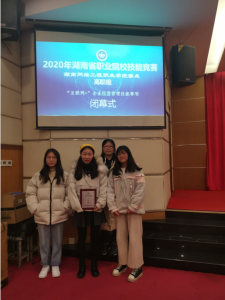 2019年12月,在2020年湖南省职业院校技能竞赛(财税融合暨大数据管理会计应用能力)赛项中,我院共派出两队参赛,均荣获了一等奖。分别为廖妍姣、李…【查看全文】