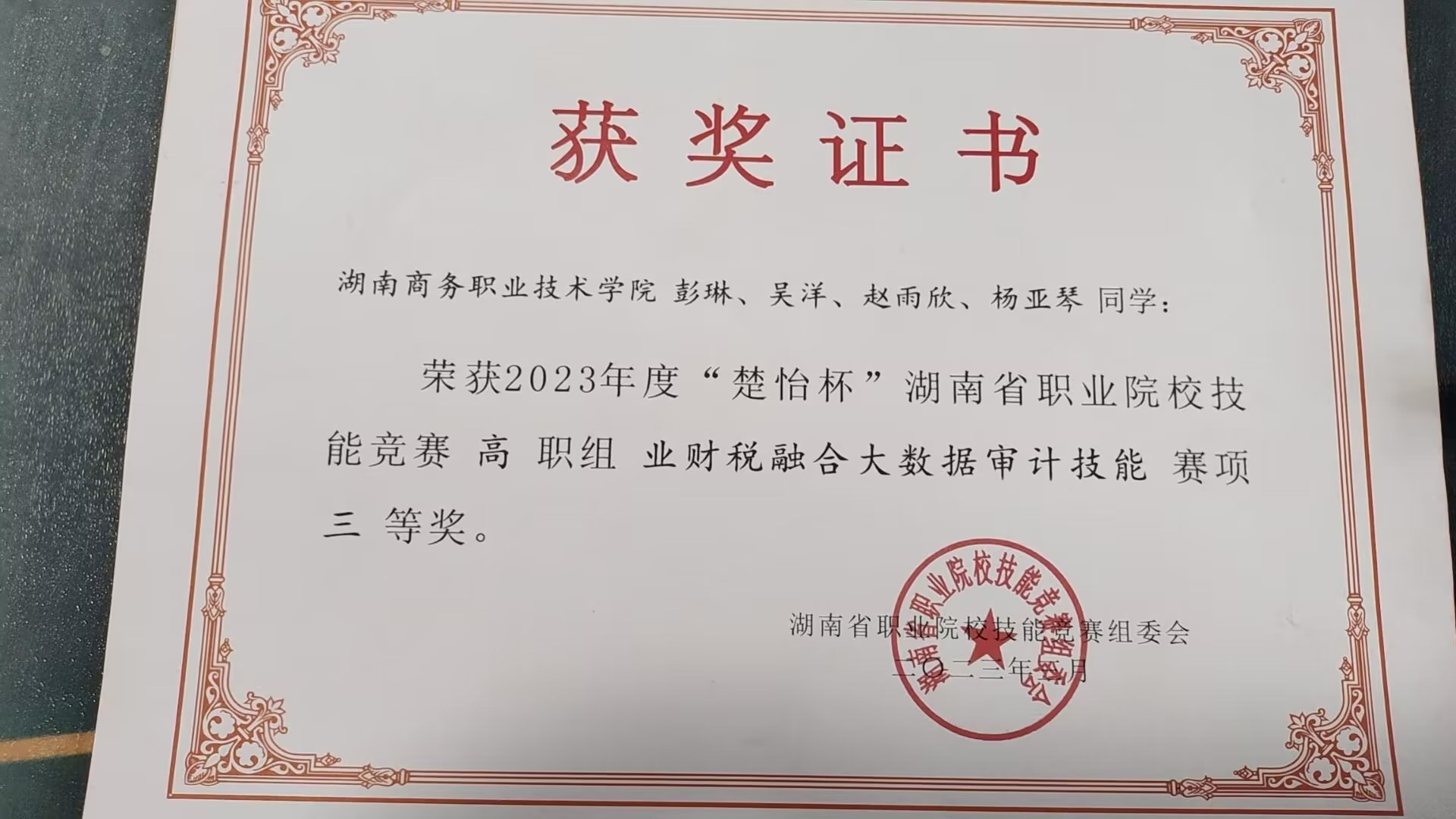 会计学院在湖南省“楚怡杯”职业院校技能竞赛业财税融合大数据审计技能赛项中荣获二等奖和三等奖