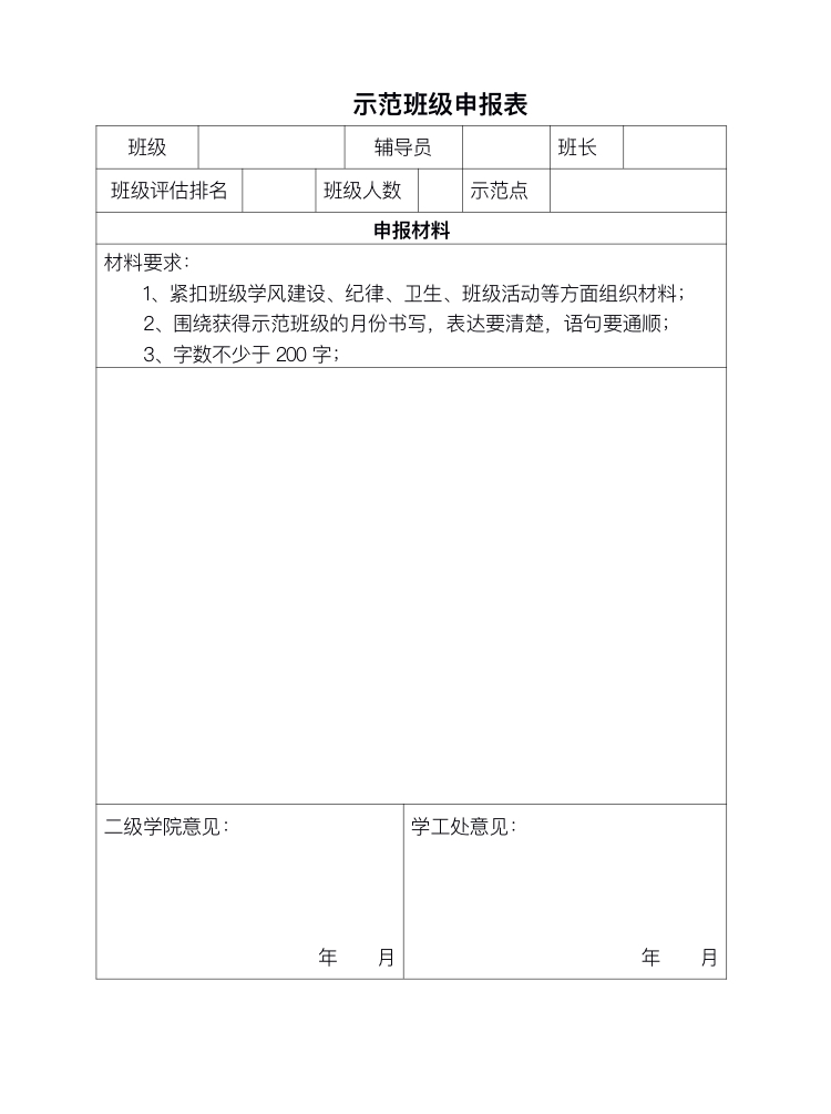 示范班级申报表