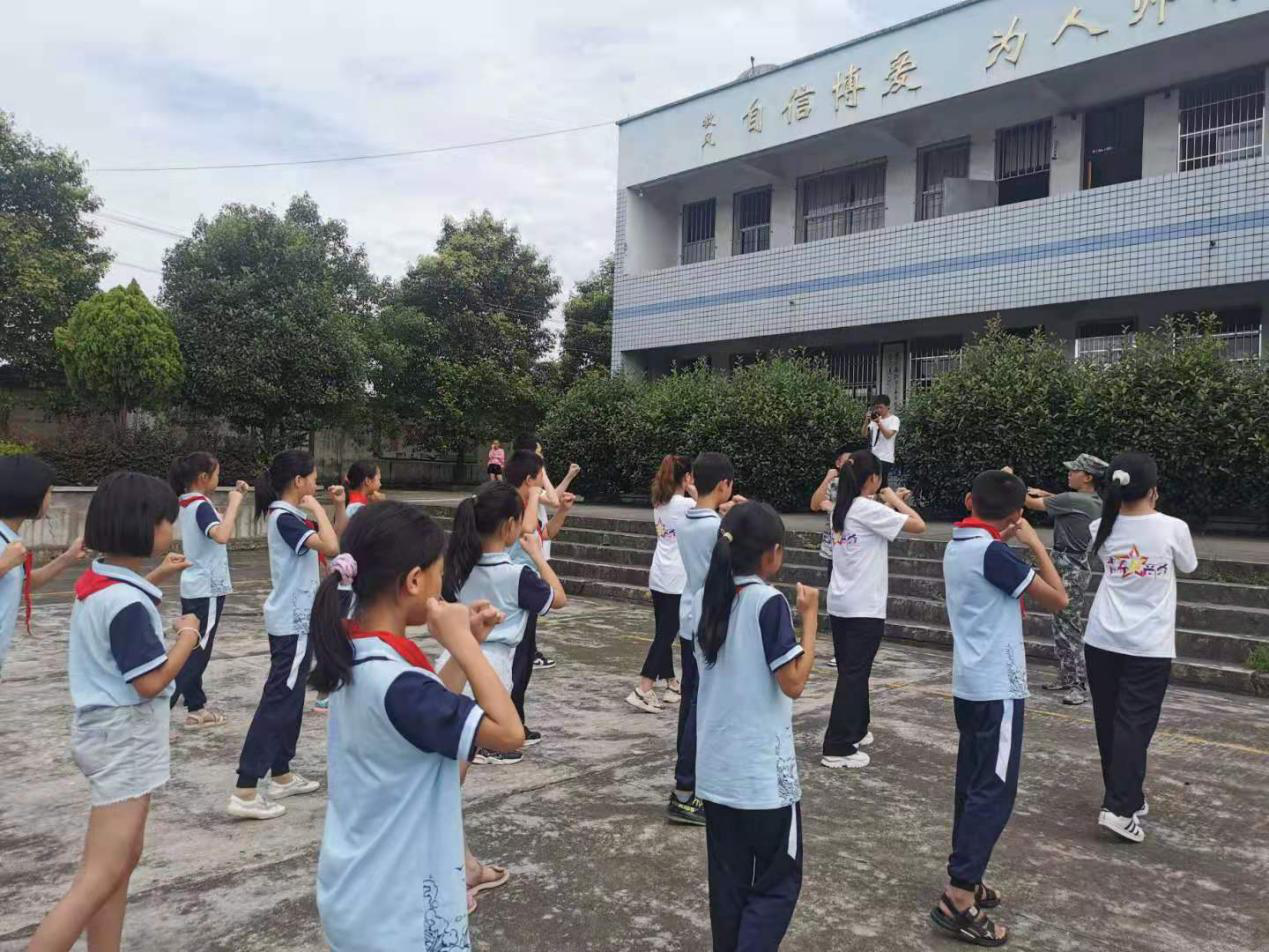 了解到这一情况后,团队成员为东山小学的孩子们制定了为期五天的军体拳教学方案。军体拳不仅可以增强同学们的身体素质,还能在遇到危险情况时适当自救,更为重要的是能够涵养同学们不怕苦不怕累、坚忍不拔、勇敢顽强的精神。