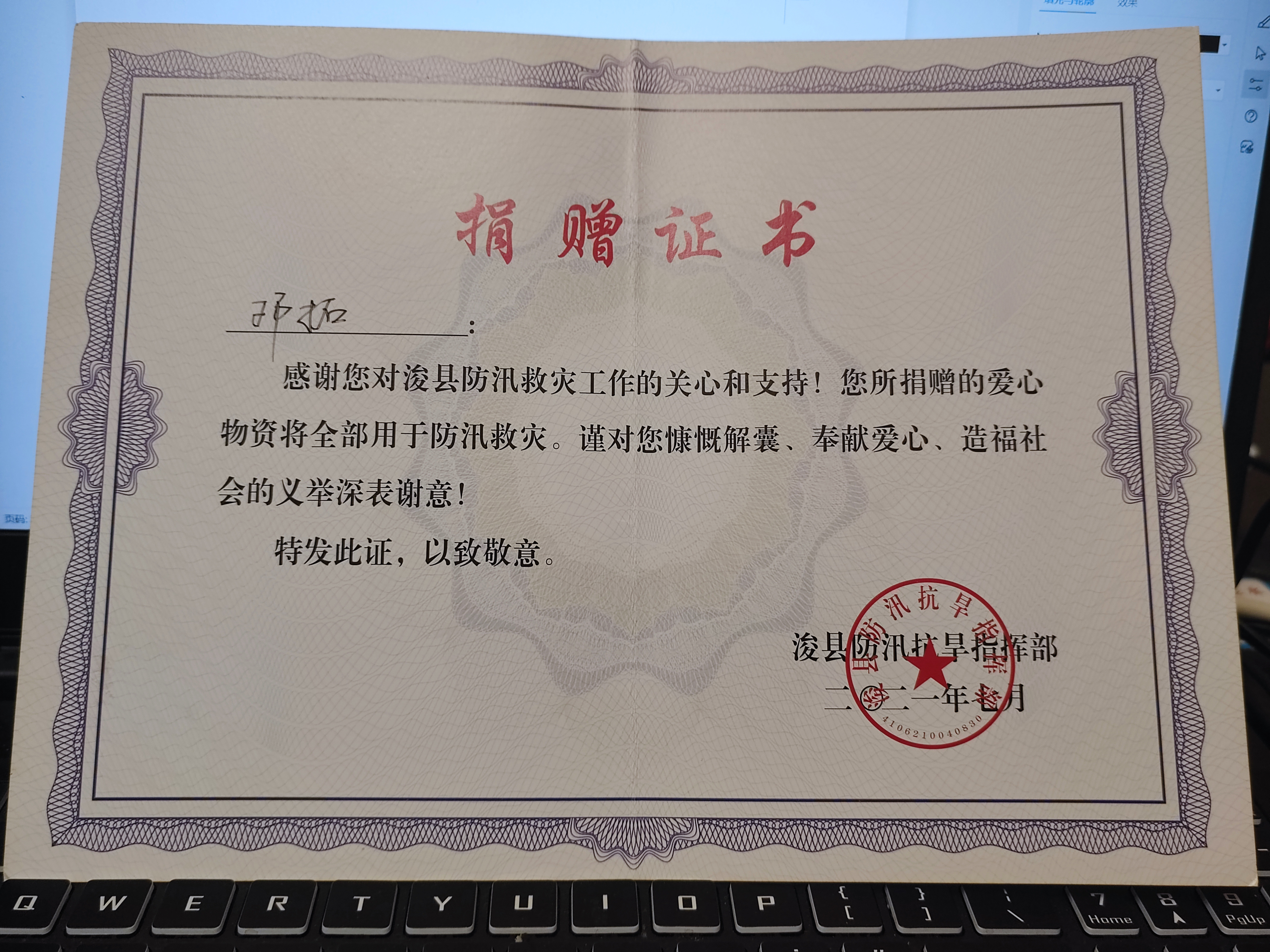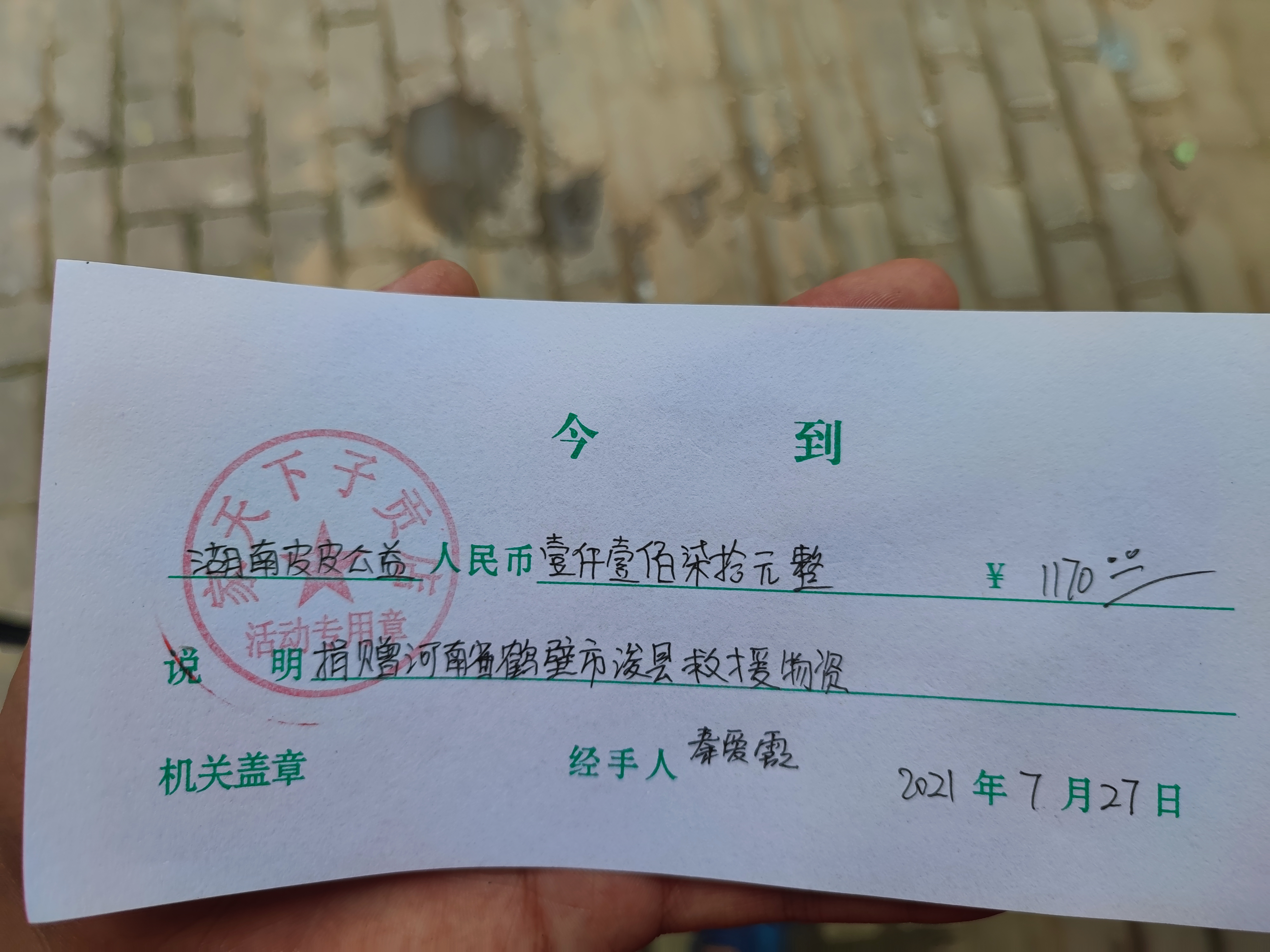 7月29日,浚县抗洪指挥部发布了泄洪通知,考虑到自身安全问题,邓拓一行人不得不提前撤离。临走前,他又受到湖南皮皮搞笑公益app的委托采购捐赠物资,便匆匆赶往批发市场,完成了数百件饮用水的装车和发送。17岁的他,深受感触,从仅剩的几百元返程车费中拿出一部分,完成了数百件饮用水的装车和发送。17岁的他,深受感触,从仅剩的几百元返程车费中拿出一部分,并组织同校的同学19酒管3班胡明华、19商英3班陈杰、20酒管1班邹梦鑫一起捐赠了上千瓶瓶装饮用水。