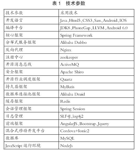 主要采用技术如表1所示。
