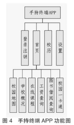 手持终端APP(以下简称APP端)主要包含登录/注销、首页、校历、设置四个功能,如图4所示。
