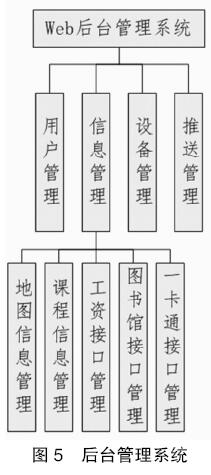 后台管理系统的功能主要有用户管理、信息管理、设备管理、推送管理,如图5所示。
