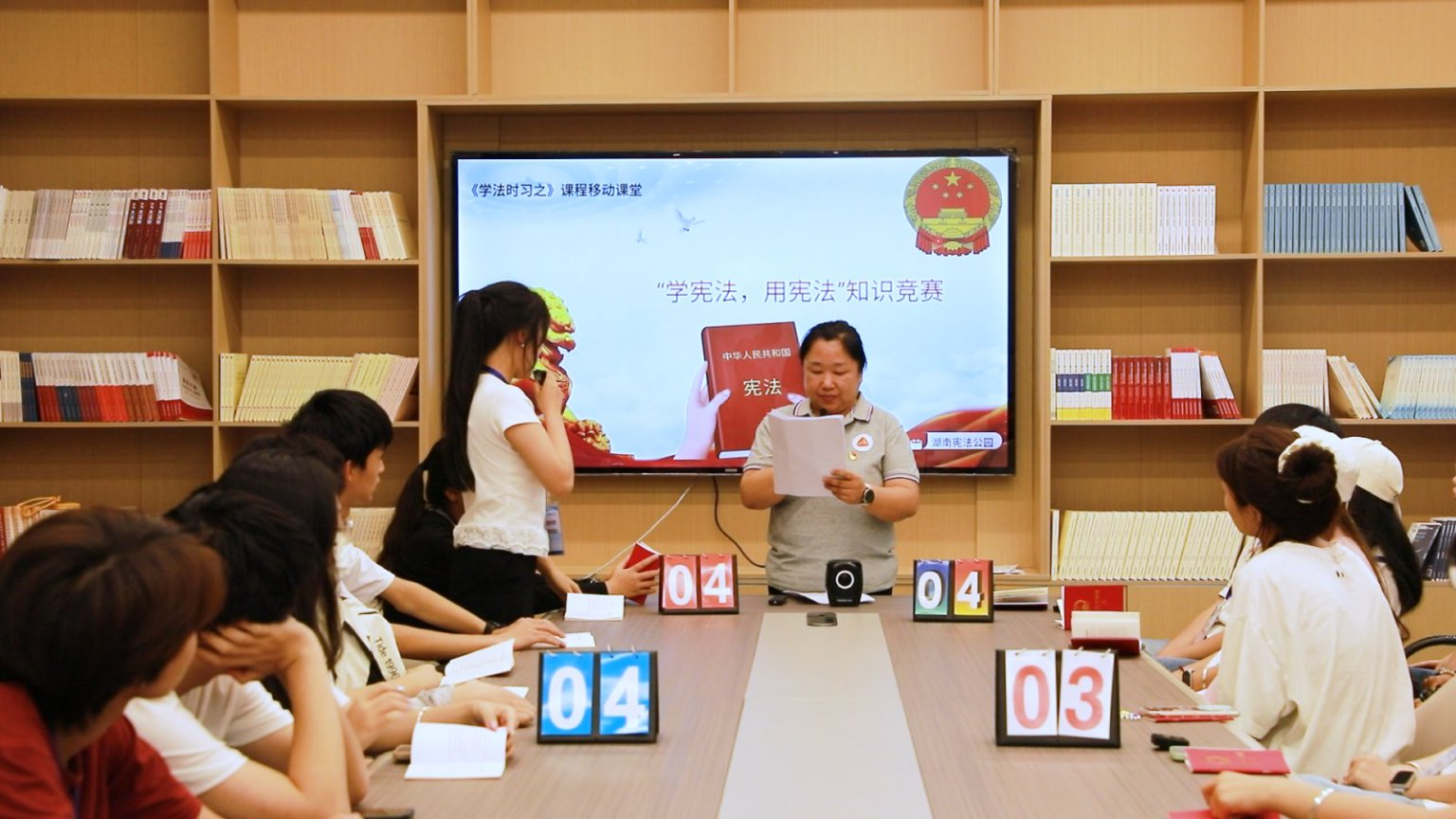 随后在宪法宣传教育展示区,工作人员详细讲解了宪法的历史沿革、主要内容以及在国家治理中的重要作用。学生们认真聆听,不时记录下重点内容。在宪法实践互动区,学生们通过参与宪法知识竞赛、互动游戏等活动,将理论知识与实际案例相结合,进一步提升了法治实践能力。宪法知识竞赛题目涵盖了宪法的基本原则、公民的基本权利和义务、国家机构等多个方面,大家积极参与,展现出扎实的宪法知识储备和强烈的法治意识。