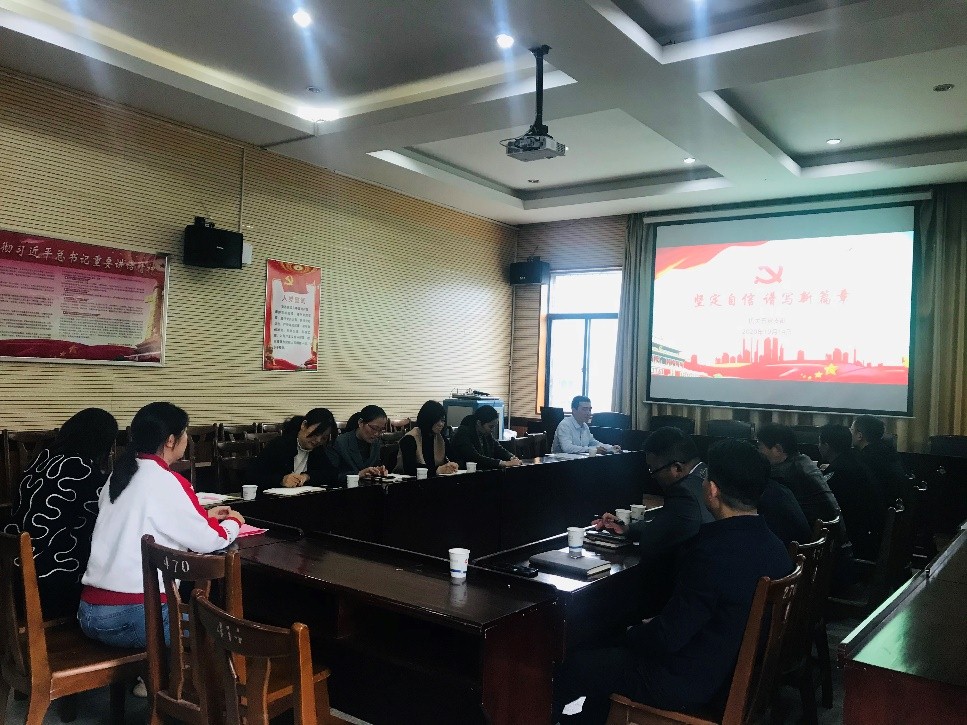 10月14日下午2:30,第五党支部在五会议室组织召开了“坚定自信 谱写新篇章”主题党日活动,支部书记杨明同志主持召开。