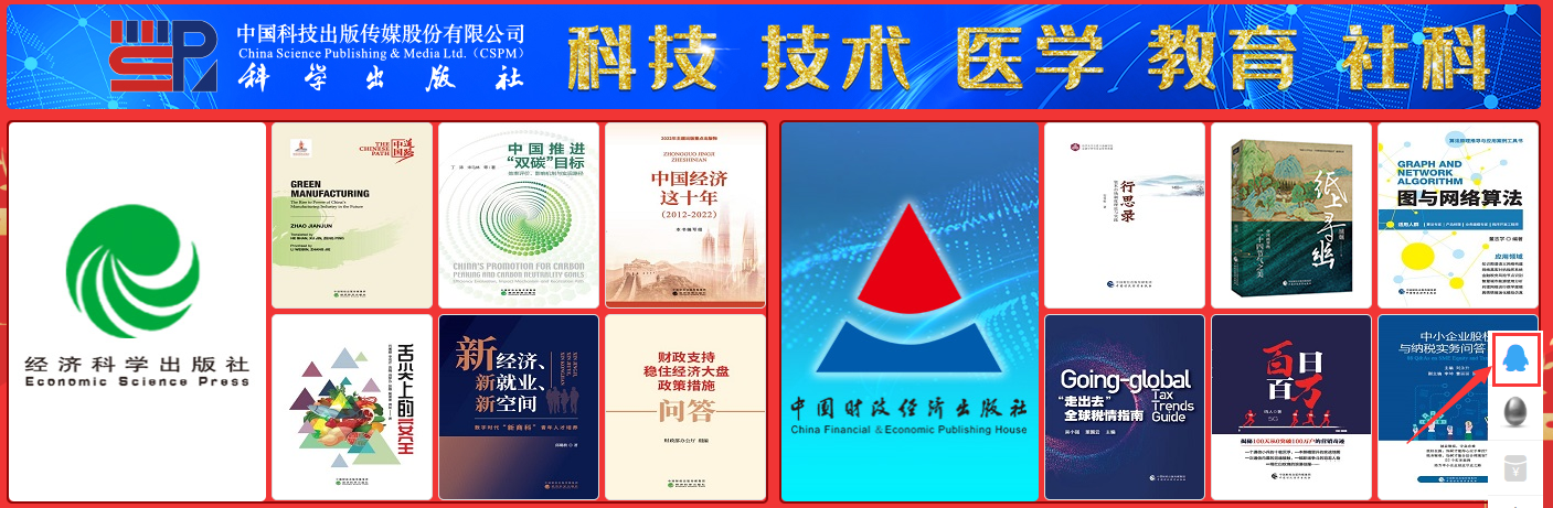 1、主会场:其右上角展示图书采会开幕式领导讲话及平台消息发布。其他板块主要展示重点出版社书目,直接点击出版社名称即可进入选书界面。