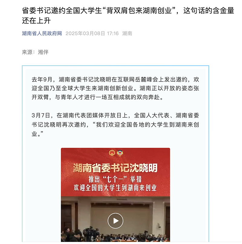 省委书记邀约全国大学生“背双肩包来湖南创业”,这句话的含金量还在上升