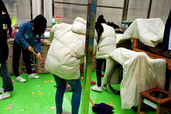 当天上午,志愿者们帮助工作人员晒衣服,积极打扫卫生,贡献自己的一份力量。并与孩子们面对面沟通交流,通过表演节目,唱歌跳舞,玩游戏等方式和孩子们进行互动,现场气氛活跃,充满欢声笑语。