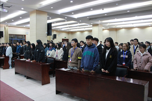大会在全体师生齐唱《光荣啊,中国共青团》歌声中拉开序幕。会上,第二届团学分会主席陈婷和心理部部长唐颜分别对过去一学年的工作做了总结,并就工作经验以及所取得的成绩与大家分享,对新一届学生的干部给予了建议;紧接着,黄冰凤老师为第二届团学分会优秀部门及部员颁发荣誉证书;随后,第三届团学分会主席团代表岳昕玮、学习部部长贺蓉分别谈了自己就职感想和工作设想,均表示将在工作中做好传承和创新,全心全意服务好老师和学生。