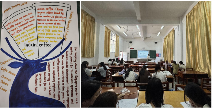近日,湖南商务职业技术学院博思楼一楼墨香满溢,由基础课部主办、公共英语教研室承办的第八届英语书写设计大赛顺利举行。本次比赛要求学生组队,在规定时间内小组根据时政新闻材料,设计出一份英语小报。基础课部全体英语教师通过“英语书写比拼”与“创意绘图设计”等多方面对参赛百余份作品进行评比。同学们以笔为媒,以赛促学,规范书写,助力职业素养养成。