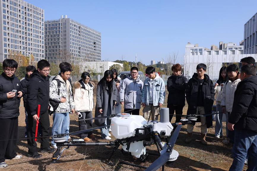 实训室的高标准建设,既在校内为学生筑牢与企业实战同轨的技能基础,又为学生走进企业一线开展实战体验搭建了高效衔接的桥梁。无人机应用技术专业将“学生入企体验实战”作为三维联动机制的重要实践环节。近日,该专业全体学生前往大疆行业应用授权合作伙伴——中电金骏集团开展实地研学活动,学生近距离接触大疆系列多类型无人机,并前往企业户外训练基地,在技术人员指导下实际操作大疆T100S农业植保机进行喷洒作业、操控大疆M307无人机开展航拍测绘,并体验CAAC无人机驾驶员考证模拟场景,让学生在真实的企业环境中锤炼技能、明确方向。