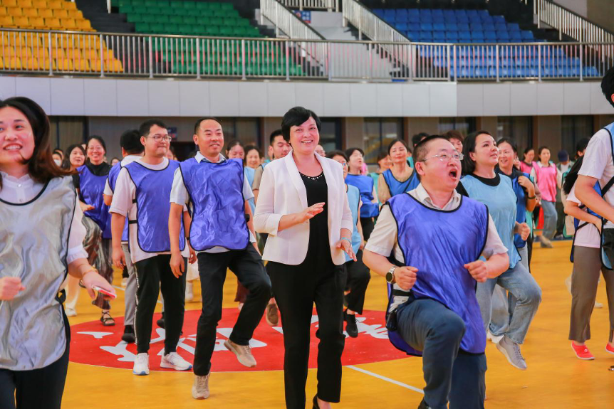 活动伊始,9 支参赛队伍身着彩色队服,在主持人的引领下,随着动感十足的音乐和主持人富有活力的口号开启了热身运动。他们伸展肢体,活动关节,现场的欢笑声此起彼伏,逐渐从紧绷的工作状态中放松下来。热身过后,哨声一响,赛场瞬间沸腾起来,所有人都摩拳擦掌,准备在接下来的比赛中一展风采。
