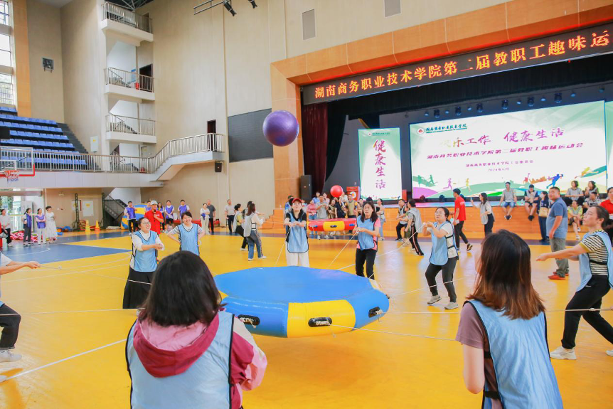 “我宣布湖南商务职业技术学院第二届教职工趣味运动正式开启!”6月25日,随着党委副书记、副院长廖志刚一声令下,以“快乐工作,健康生活”为主题的教职工趣味运动会在体育馆欢乐开幕。由教职工组成的 9 支分工会队伍精彩亮相,在此展开了一场体力与技能的精彩角逐。