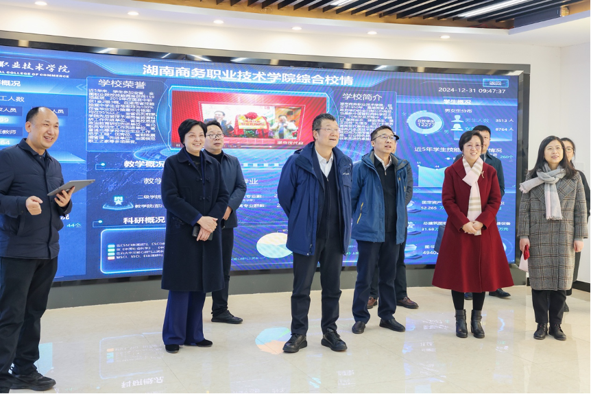 12月31日,元旦前夕,省总工会党组成员、省教育工会主席刘湘凌一行来到湖南商务职业技术学院调研指导工作并与全体师生一起喜迎新年。党委书记潘军,院长李定珍,党委委员、工会主席聂振华陪同调研。