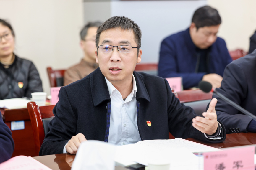 潘军就提升学院党建工作质效,加强党建工作谋划提出“四个提升”:一是着力提升学习规范性,深入、系统学习领会党建最新文件精神及要求,确保理论学习有目标、有重点、成体系;二是着力提升架构规范化,严格对标上级文件规定要求,优化基层党组织规范化建设,做到建设有标准、行之有规范;三是着力提升活动规范化,以党建示范校申报为抓手,持续推进“一院一品”“一支一特”系列党建品牌建设,打造具有独特性、创新性和引领性的党建品牌,有效促进党建工作与业务工作的深度融合;四是着力提升述职评议规范化,明确述职内容,突出述评重点,实施台账化、清单化考核,强化结果运用,强化各级书记抓党建的责任意识和担当动力。