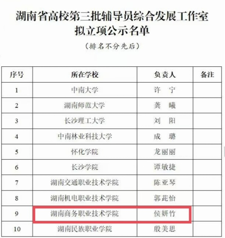 突破!湖南商务职院侯妍竹成功立项湖南省高校第三批辅导员综合发展工作室