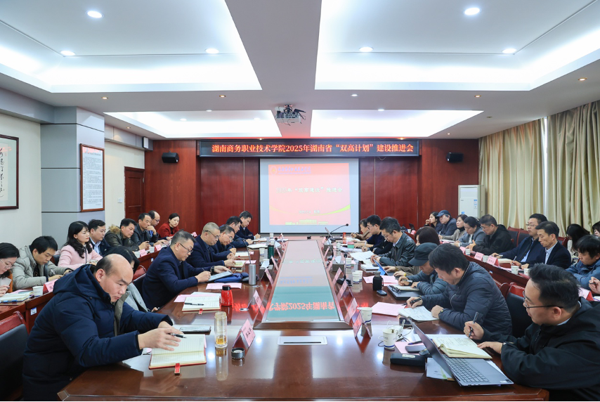 12月4日,学校召开2025年湖南省“双高计划”建设推进会。党委副书记、校长李科,党委副书记桂诚,党委委员、纪委书记黄栋,党委委员、副校长禹明华,党委委员、副校长姜华斌,党委委员、副校长易兰华及“双高计划”创建工作相关部门负责人参加会议。会议由党委委员、副校长彭铁光主持。