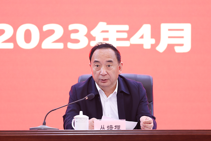 4月13日,湖南商务职业技术学院召开学习贯彻习近平新时代中国特色社会主义思想主题教育动员大会,对全院开展主题教育工作进行动员部署。省委主题教育第二十三巡回指导组组长、省国资委党委原副书记、原主任,省人大财经委副主任委员丛培模出席会议并讲话。