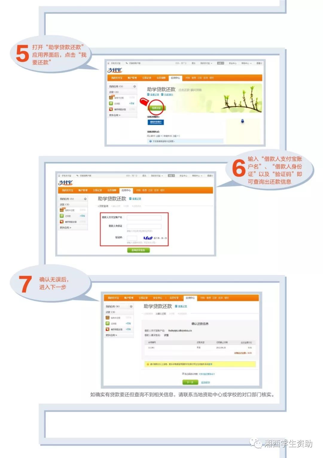 另外,以上三种还款类型都支持贷款学生前往所属资助中心进行银联POS机刷卡还款、支持学生在支付宝公众号上进行还款。