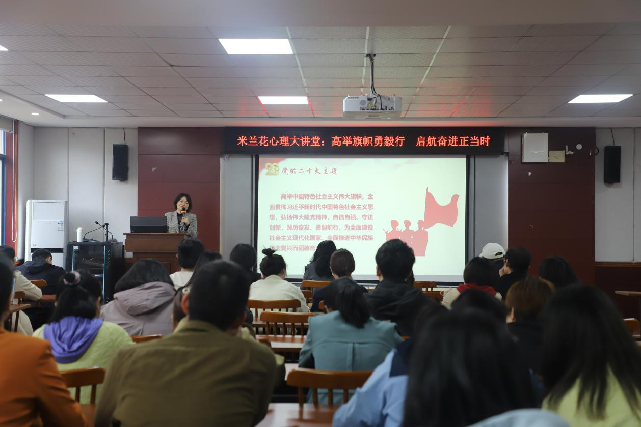 为弘扬红色文化、传承红色基因,赓续二十大精神,2023年4月4日下午,湖南商务职业技术学院米兰花心理大讲堂特邀中南林业科技大学心理中心主任袁红梅老师在二教201开展了以“高举旗帜勇毅行,启航奋进正当时”为主题的讲座,学生工作部杨明部长参加此次讲座。