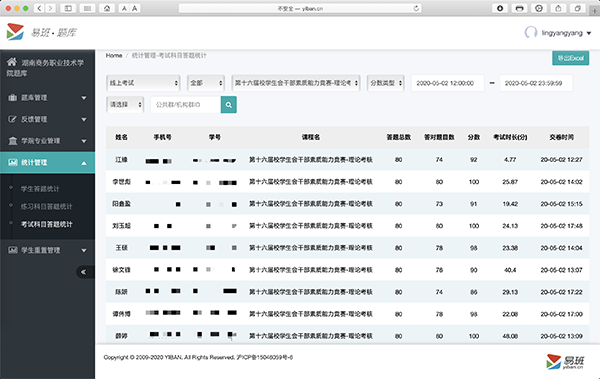 在5月2日进行的理论考核中,共137人通过易班APP参与线上考试。该赛项主要从由学校章程、校纪校规、文学常识、政治理论等方面组成80个考题,考核学生干部对学校工作的了解以及对政治理论的学习等个人综合素质情况。
